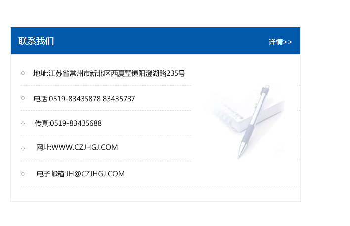 傳真:0519-83435688    郵編:213135    網址:WWW.czjhgj_com.58ask.net    電子郵箱:JH@czjhgj_com.58ask.net